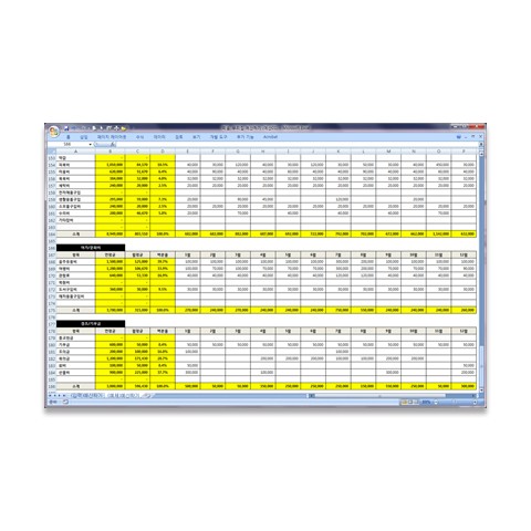 한 개의 서식 파일 안에, 두 개의 워크시트가 있는데, 같은 서식입니다. "(입력)예산짜기" 시트는 즉시 입력해 보실 수 있도록 입력란을 비워둔 시트이고, "(예제)예산짜기" 시트는 작성예를 미리 넣어두었습니다. 참고용입니다.